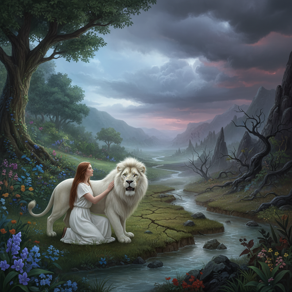 * 에덴의 질서 (Pre-Fall): 아담의 통치권은 하나님의 형상을 닮은 '사랑'에 기초했습니다. 동물들은 인간에게 자발적으로 순종했습니다.