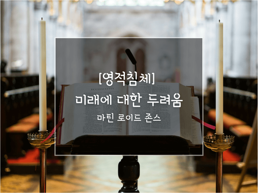 이 내용은, 마틴 로이드 존스(Dr. Martyn Lloyd-Jones) 목사님의 영적침체에 관한 설교 중 디모데후서 1:7을 통해 전한 말씀 (제목: 미래에 대한 두려움, Fear of the Future)을 요약한 것입니다. 미래에 대한 두려움에 사로잡혀 현재를 제대로 살지 못하는 그리스도인들이 있을 수 있다는 것과, 사탄의 전략, 개인의 성향을 잘 이해하여 주님을 믿고 담대히 미래를 향해 가야 한다고 권면합니다.